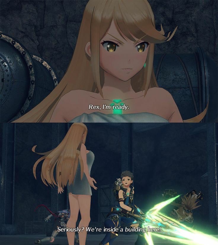 Проблема второго зиноблейда заключается в первом зиноблейде. Точнее в ожиданиях относительно серьезной истории, каждый виток которой отвечает на одни вопросы и задает кучу других. А получаешь в лицо карикатурных промежуточных злодеев и сиськомечи. Еще есть три главных злодея с охуительными мотивациями по типу: "у меня убили тян, поэтому я уничтожу мир", "у меня убили родителей, поэтому я уничтожу мир" и "лол, уничтожу мир чисто по приколу". Причем эти злодеи еще и начинают пиздиться между собой. Подозреваю, это сделано что бы чисто оправдать битву мехов на фоне в одной локации (охуительно атмосферную, тут не поспорю). Во второй части реально интересная и многогранная боевка с огромным простором для билдодроча (хотя в конце все сводится к настукиванию шариков и детонации). Но вот атмосфера убита гг школьником, роящимся на свалках. Вся мотивация героя - сиськи. Если бы вместо Пайры он встретил какого-нибудь мужика, не думаю, что он бросился провожать его на вершину мира (если Рекс не глиномес, конечно).