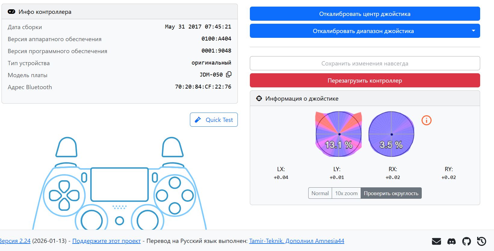 Нахваливал свой дш4 вместе с блюретро, и как всегда обосрался. Сперва в нфс заметил что машину резко дергает при поворотах, будто сенса левого стика увеличина в разы. Потом в вайс сити понял что целиться просто нереально, прицел или еле двигается или сразу дергается по всему экрану, какая-то плавность и линейность в принципе отсутствуют. Подключил дш2- стало получше, с поправкой на то что его дубовым стикам под двадцать лет и он очень далек от точности. Нашел прогу для калибровки дш4 и офигел, там левый стик оказывается ушатаный, люто дрифтит и выходит за допустимые показатели.