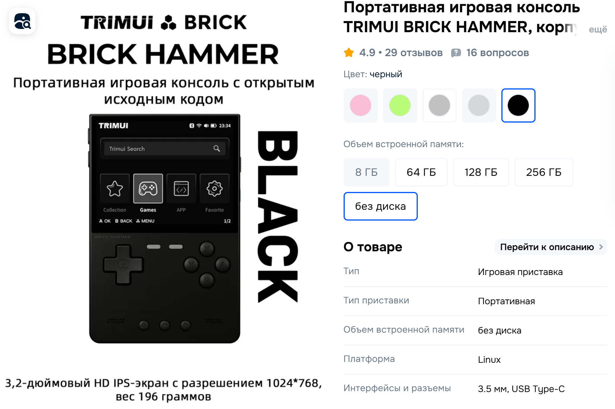 После недели опыта на ргкубехх: Линукс и более дешёвый ценник прям помогают этому варику, так как квадратный экран берут либо ради геймбоев и снес, либо пико8, ни то ни то андроида и жирного железа не требуют. (Ещё есть интересное обсуждение по вондерсван и неогео колор, но это более обскурные вещи) Работает хорошо, не тестил пока только вывод на экраны, но хз надо ли вообще такое тестить. Из минусов только какой-то очень короткий радиус подключения к вайфаю (ради ретроачивок и ссш хотелось бы постоянно сидеть), придется роутер по дому двигать наверно. Люди которые на анберниках в целом катают, как там онлайн работает? Если на локалке то адекватно?