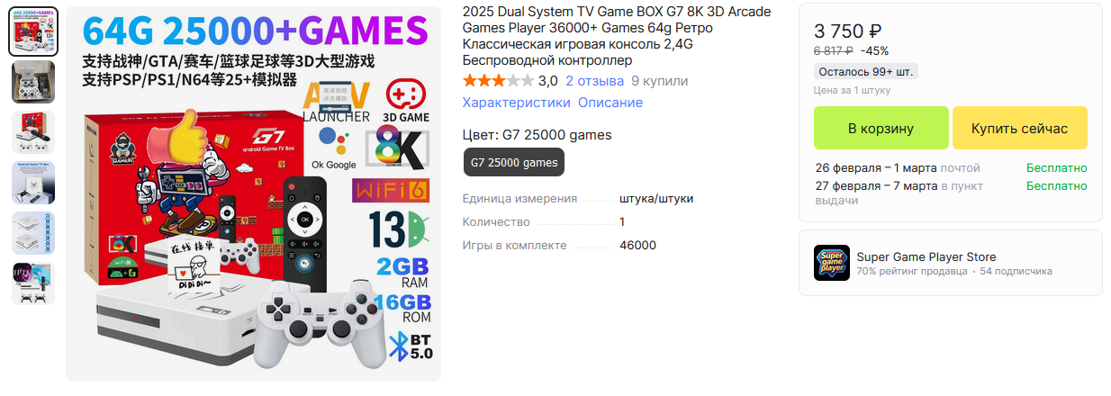 >>2575081 я думаю цены должны устаканится и хотя бы за 80-90$ её всё таки будут продавать ~7к рублей за такую производительность андроид приставки это всё равно неплохо