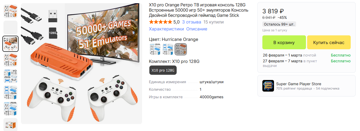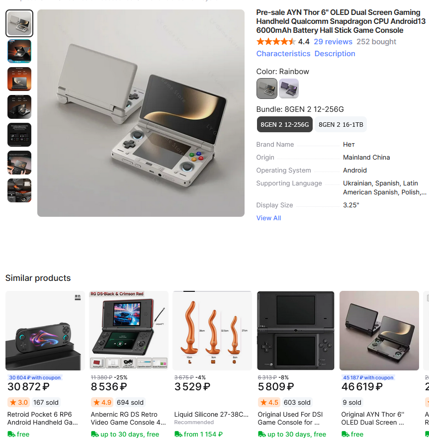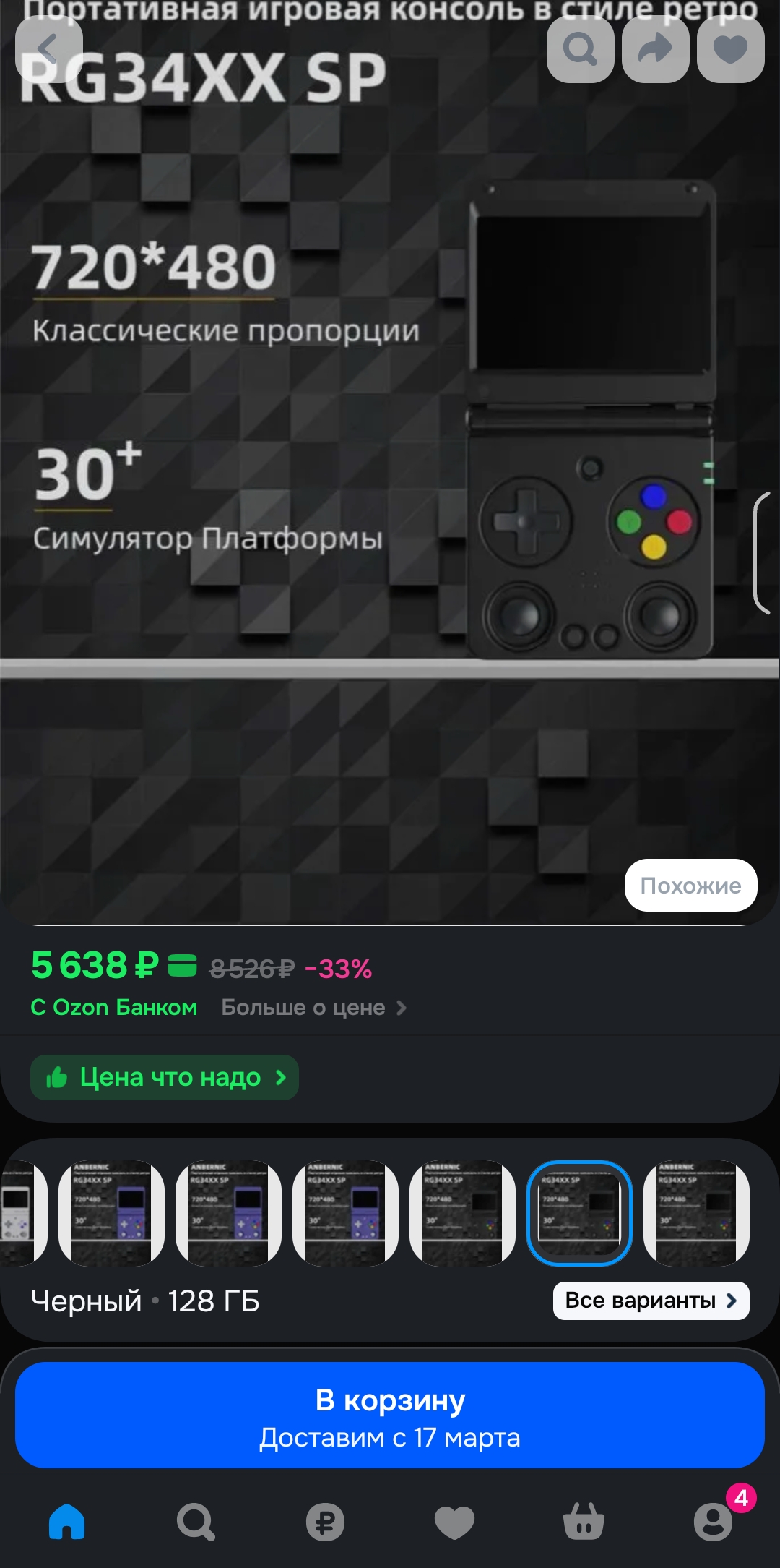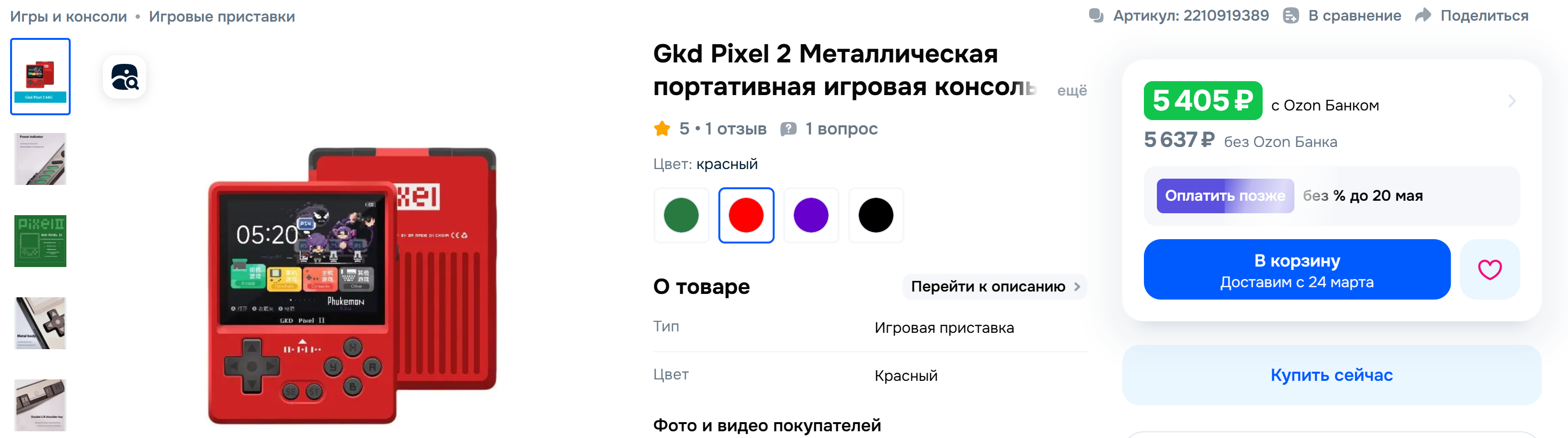 Приобрел прикольную консольку. Называлась она Portable Zeus на Озоне. В прошедшем времени, потому что ее уже нигде нет и чувствуется что не будет, хотя буквально пару недель назад, когда я покупал, оставалось еще 40 штук. По факту это Anbernic RG-35XX plus, но она полностью русифицирована какими-то сумрачными гениями. Инструкция, коробка, интерфейс и бейджик на консоли на русском. Была цивильно запаяна в пленку, чего я никогда не встречал в китаеконсолях, которые по классике приезжают с мусором внутри. Ну и она просто работает из коробки. То есть пердолиться не нужно совсем. Не нужно менять карту памяти или что-либо докупать (в комплекте есть на 64гб), на одной карте аллоцированы и игры, и система, всё хорошо и всего достаточно. Стоила со скидосом 4к, без скидоса 12. Впечатления самые приятные, игоры летают (ретро, ессно), удовольствия море. Собрана и укомплектована супер классно. И плюс кажется что я ухватил что-то довольно редкое, возможно какую-то пробную партию, которую решили не продлевать или что-то в этом роде. Мб еще у кого-то тут она есть?