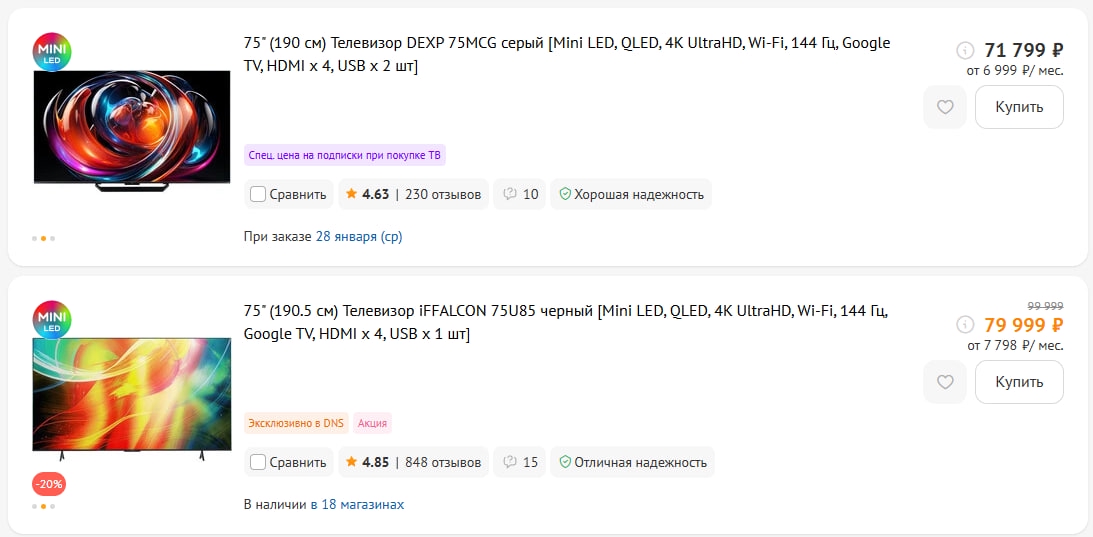 >>2575569 а на матрицу, проц и звук мы смотреть не будем, так получается? Телевизор это не телефон, чтоб только по герцовке и оси выбирать. Там еще дохуя параметров есть.