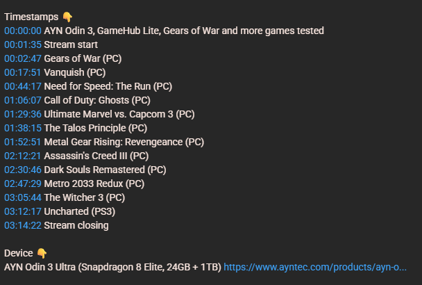 >>2569766 Новинки идут/не идут примерно 70/30, если ты про это. Например, сралкер 2 не пойдет, Обливион ремастер пойдет. Ккд2 и клеир обскур пойдет, дайвинг лайт Зе бист работает через жопу. У меня дек основная консоль, ну и сыч. ПК нет вовсе. >>2569833 Конкретно у говна, что у тебя на пике, возникнет. Это китайский ноунейм, который надо заряжать раз в день, и у большинства китайских ноунеймов есть неотключаемая функция выключения клавиатуры минуты через 3.