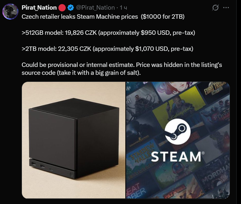 стим машин вряд ли будет мощнее 4060/пс5, и вообще сейчас реально APU/GPU бывают двух видов, или миниька 395 max, или discreet GPU + CPU . А steam machine ни рыба ни мясо. Слишком маленький, чтобы вмеестить условные 5070+13600, и бесмысленно большой для чего-то мощнее APU AI Max 395/Z2 как beelink игровые