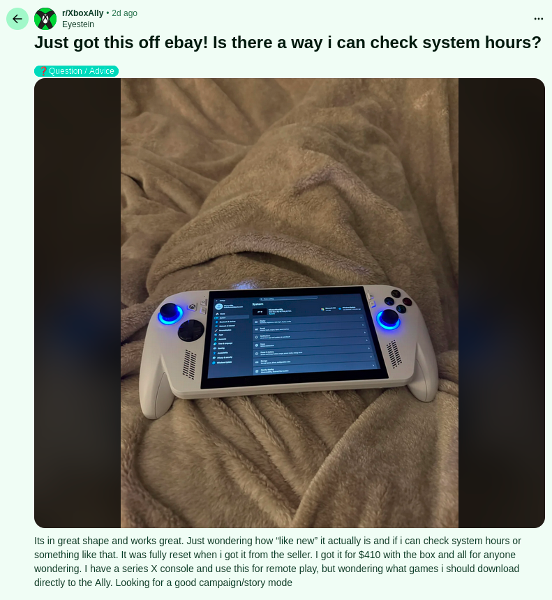 >>2569820 Ну да. Я вообще не заметил проблем никаких. Судя по всему, я у нее не первый. И даже не второй. Очень вандалоустойчивая штука, на стекле лишь одна царапина, разбиралась судя по всему не раз(меняли со 128 гб на 256 а потом на 512), но не люфтит(хотя, я читал, что после разборки ухудшается устойчивость к падению), аккумулятор 100 процентов. Мне еще повезло, что первый владелец заменил стики на Холловские, а оригиналы сохранил, поэтому у меня они теперь почти без пробега. Она у меня ассоциируется с какой-нибудь десяткой или четыркой корчеванной, прошедшей через несколько нежных пацанских рук. Люблю ее.