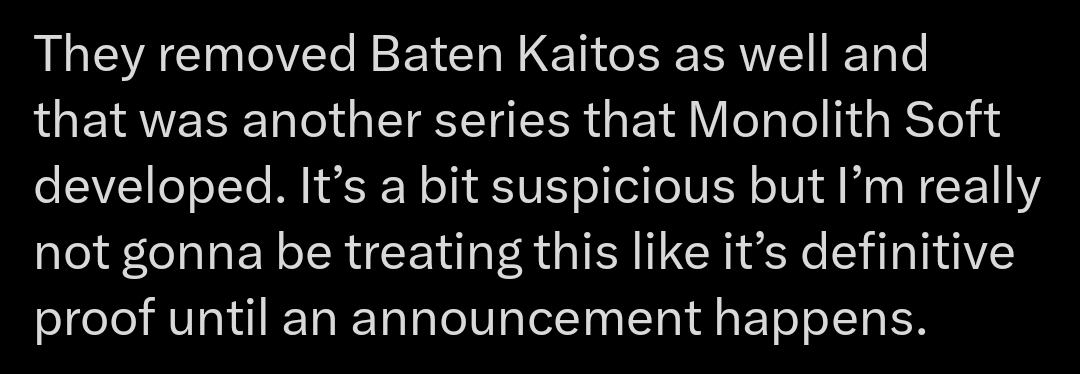 Положняк таков: Xenoblade 1 - аниме для бумеров Xenoblade 2 - аниме для умственно неполноценных Xenoblade 3 - аниме для нормисов Xenoblade X - аниме для Дениса Мейджера PS: На Switch 2 патчей нет
