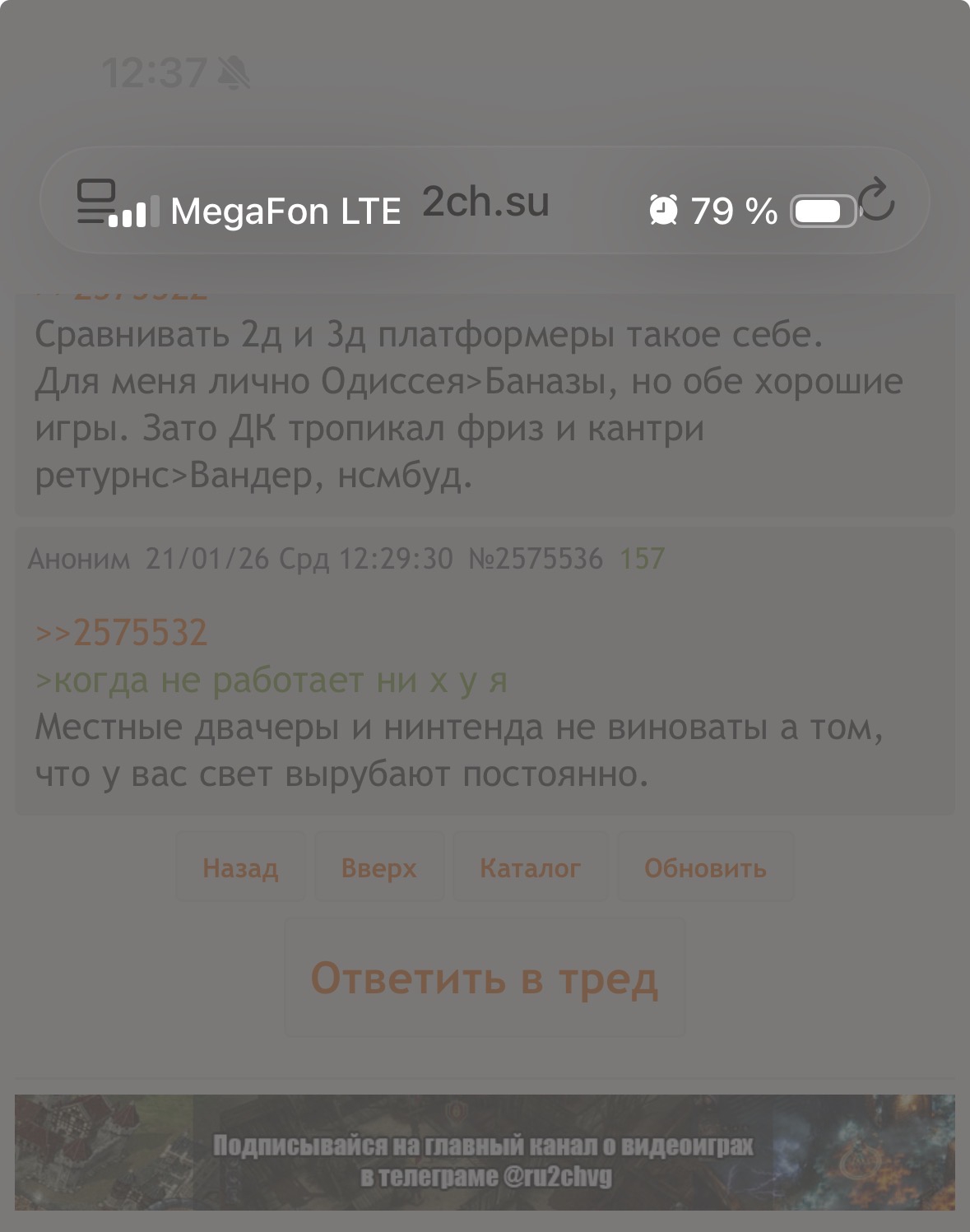 >>2574870 >у свитча, увы, такого нет Ещё как есть! Картриджи 3DS, Switch и Switch 2 точно так же, как диски Wii U, PSP, PS3, PS4 и PS5 несут на себе требуемую им свежую версию прошивки, чтобы обновиться прямо с них. Кроме Game Key Card, очевидно, но ненавидят их не только за это. >>2574866 Сам механизм Switch/eShop таких "отвалов" не предусматривает: установил - стоит - работает. Крайне редко такое встречается в самих играх: например, "Diablo II: Resurrected" требует соединения со своим сервером раз в 30 дней, иначе не запустится. Но это вопиющий случай, особенно с учётом, что в "Diablo III: Eternal Collection" ничего такого не было. Ещё в последнее время обострился момент с патчами для обратки: недавняя "Super Mario Galaxy 1+2" с картриджа не работает на Switch 2 без выкачивания обязательного патча. Ментально можно торговаться, что это игра OG Switch, которая отлично и без патчей работает на OG Switch, а Switch 2 - это отдельная система, и обратка в ней такая, какая она есть... но всё равно неприятно. Но это я тебе перечисляю частные случаи, о которых только коллекционеры в курсе, и о которых ты бы так просто, "с улицы", не узнал. В целом же с оффлайном всё хорошо.