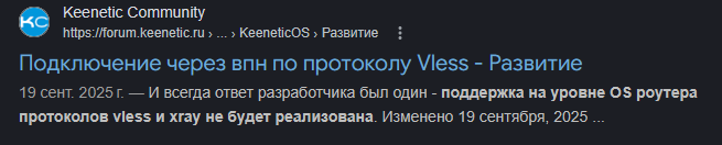 >>2575848 У меня кинетик за два куска взятый специально для данной цели. Там стоит заводская прошивка, и в графе виртуальные сети добавить, надо вводить то, что у тебя в v2raytun написано, когда ты сам ключ открываешь и смотришь его параметры. Адрес, порт, айди, шифрование, путь ws. Да, это не ключик вставить, а чутка побольше так же вставить. На Хабре был целый перечень роутеров кинетик, где из коробки можно влесс. Именно из коробки без опенврт. И все 2024+ У меня на "нормальном" роутере после обновления прошивки так можно было ставить WG и Open, но оба отлетели летом, поэтому купил самый дешёвый. Он же заодно для Ютуба на телевизоре. Конкретно у меня какой-то Carrier, не помню точную модель.