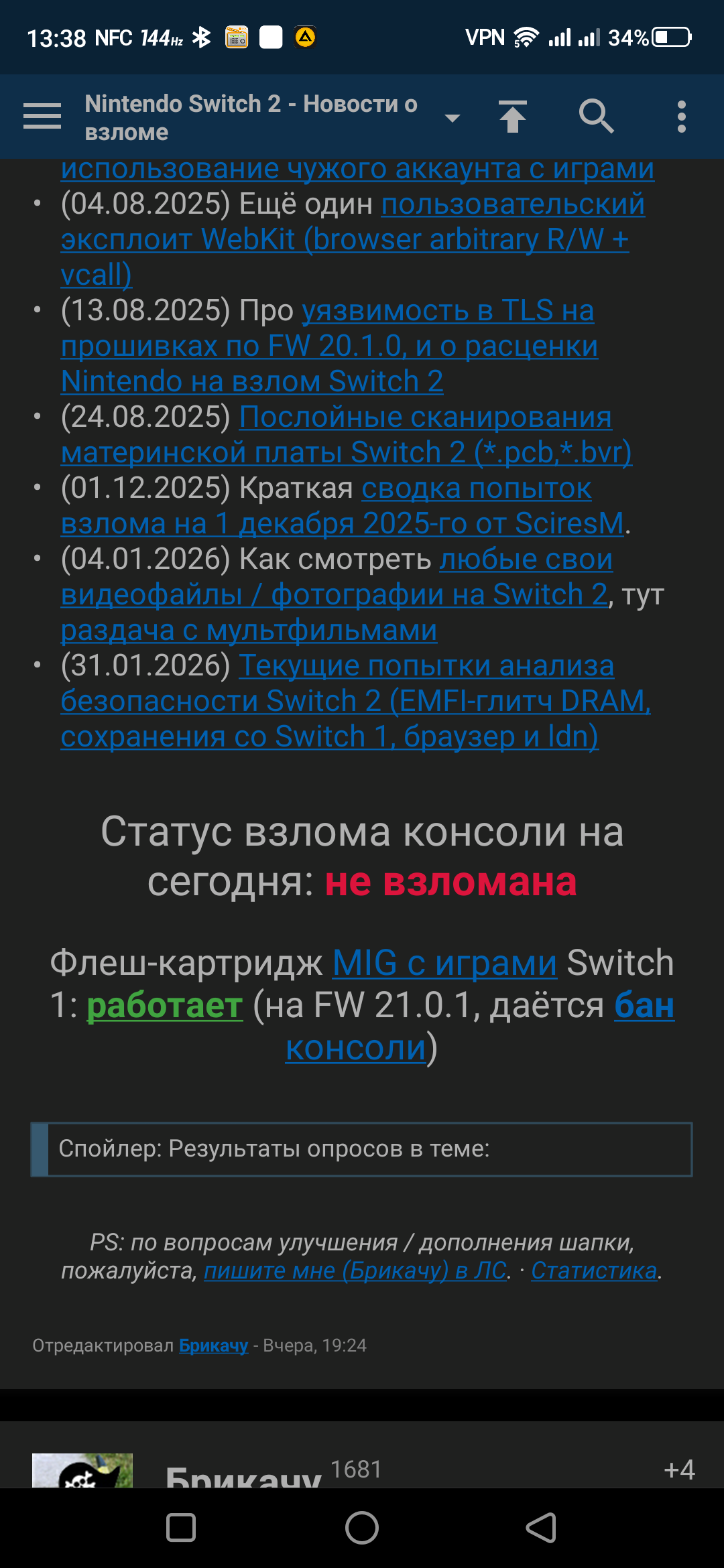 @monkey switch 2 взломали? фейк 100%, анон. ни одного подтверждения от нормальных девелоперов типа тех же Atmosphere ребят, KairunNS2Explorer - это какая-то хуйня из телеги, гугл не знает. на старте продаж с прошивкой 19.x нинтендо всегда патчит дыры за недели, а не оставляет "полный доступ".