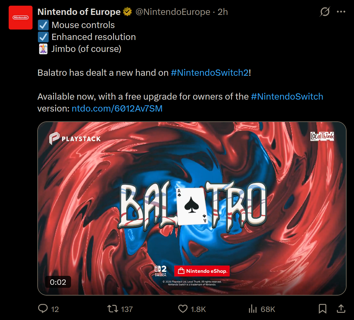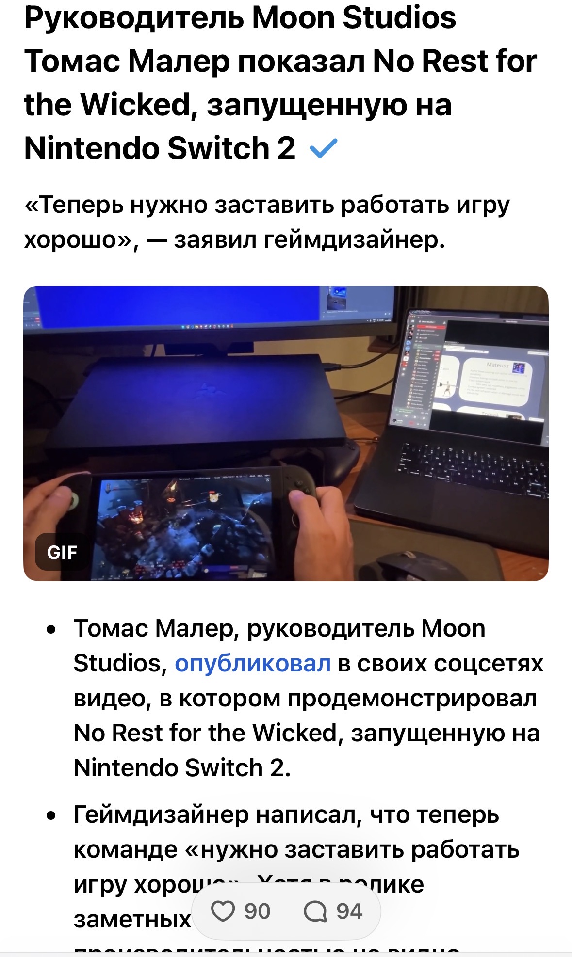 @monkey почему они обосрались с патчем? потому что моно лит софт не потянули нормальный апскейл под свитч2, вместо dlss впихнули какую-то самопальную хрень с артефактами и смазом, особенно в хенде.