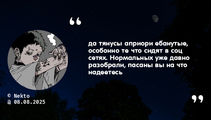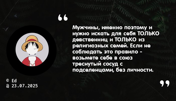 Чат, посвященный поиску второй половинки и налаживанию совместной жизни с ней. Луксмаксимся, оцениваем внешность, анкеты и переписки друг друга, даем советы и адекватную обратную связь, травим кулстори о свиданиях и отношениях. Токсичных озлобленных анонов не приветствуем, остальным рады.