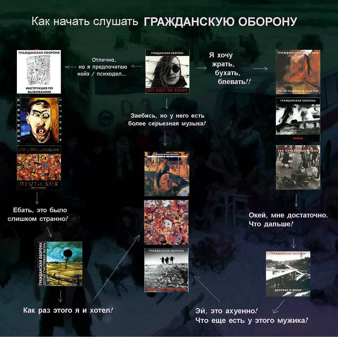 Скачал с РуТрэкера дискографию ГО - 66 релизов. Сейчас дослушал "Электрического пса" - это был последний альбом в раздаче. Ушло у меня на это около месяца. Ну, что тут сказать? Охуенная группа, всё очень понравилось. У Летова очень хорошие вокальные данные, хороший голос, он красиво поёт, офигенно кричит. Отличная шипящая, скрежещущая, грохочущая, просто шумовая музыка, которая порой доходит до уровня Merzbow (как в "Энтропии", например). Особенно охуенно, когда он ещё и поёт под неё, это сочетание красивого пения с жёстким нойзом вызывает оргазм, а когда он ещё и кричит под этот шум, то я просто выхожу в астрал. Ну, и конечно же, охуенные сюрреалистические текста. Короче, никаких минусов у ГО назвать не могу. Его Side-проекты пока ещё не слушал - оставлю на потом.
