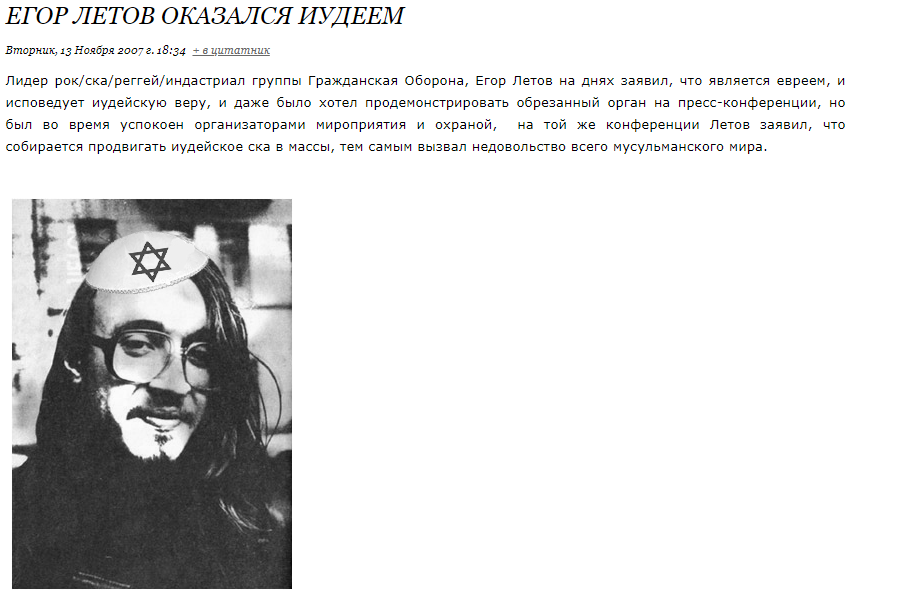 Номады, а почему многие аноны так любят Летова? По-моему, здесь всегда кидались говном в людей вроде него, именуя их нитакимикакфсе и говнарями, так почему же его это обошло стороной?