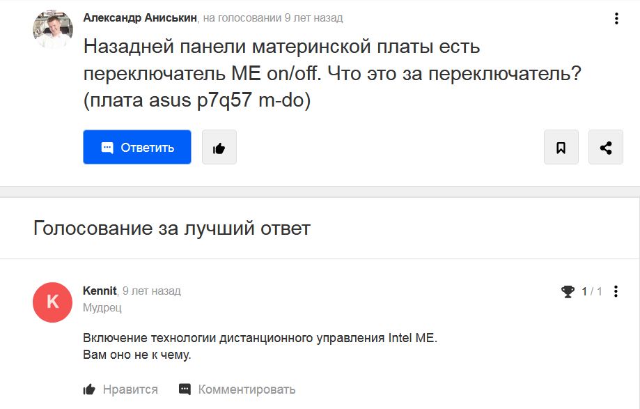 Поскольку это наиболее подходящий тред, тут про ME, intel и тд, напишу здесь.