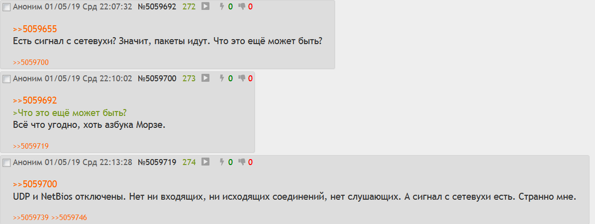 >>31348 Но тогда обратная ситуация: по всему миру должны ходить некие магические пакеты, кто-то бы заметил, да и как большой брат поймёт на какую машину слать магический пакет? - значит машина сначала должна уведомить ББ что на ней что-то есть интересное... либо эти пакеты подмешиваются к обычному трафику, но я уже не представляю какие ресурсы нужны чтобы их потом вылавливать, это уже заговор мирового уровня... Расскажи что там за SMM.