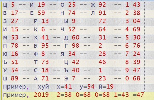 2)По таблице заменителю символов заменяем значение символа в цифровой код для шифровки.