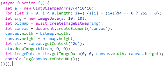 Ну и где ты видишь пиздинг фингерпринта из браузера? И видишь нахуя всё оно надо, вся та ебанина с canvas'ом? А попросту, чтобы вызвать потом - canvas.toDataURL(), и получить dataURL, содержащий base64 пережатой пикчи, которую аттачишь, и вставить этот base64 в нанопост. Можно как-то по-другому получить base64, не используя canvas, чтобы твой йоба-антивирус - не выдавал false positive detections?