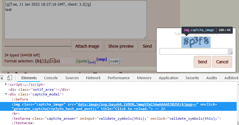 >>49101 >>49102 >>49103 >>49104 А где этот канвас в коде, именно? В каком месте? Я вообще канваса не вижу, каптча выводится в img-теге. Или это на борде карася?