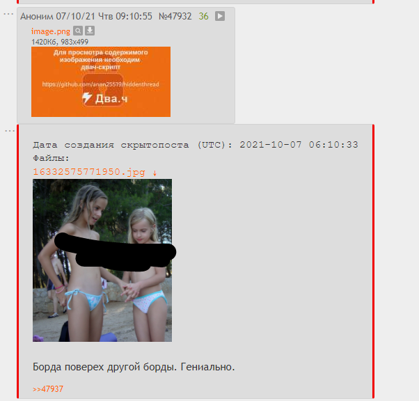 Анон-куну, написавшему этот скрипт: Я бы допилил в него еще какой нибудь парсер, который проверял бы все живые треды в определенной доске и показал сразу скрытотреды сразу (да, конечно, можно вручную пролистать, я просто придираюсь).