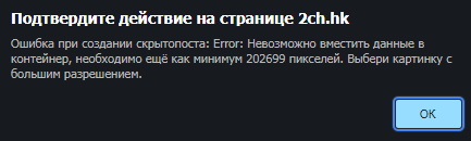 Нашел баг в файрфоксе - значения отдельных пикселей на канвасе могут не соответствовать значениям на изображении, из-за чего контейнер пидорасится. Вот код для проверки (взял для примера эту пикчу >>47971, которая в файрфоксе не распаковывается): https://jsfiddle.net/vgwqe2ok/6/ Реальное значение пикселя - 1, а в файрфоксе определяется как 2. Как это пофиксить - хуй знает. В общем, придется пока юзать хром для скрытотредов.