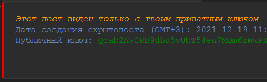 >>48680 Так они всегда выделялись. Изменение будет в другом: - ключи можно будет сохранять в браузере - будет поддержка нескольких ключей, и в посте будет писаться, на какой именно ключ адресован пост