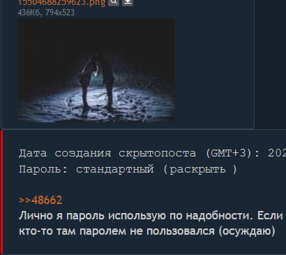 Было б неплохо добавить отдельный класс для скрытопостов с паролем, а то непонятно, что именно было скрыто, отвечать лучше с паролем или без. Ну ты понял.