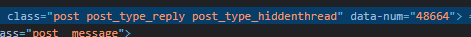 Алсо, опчик, сделай для запароленных/личных постов дополнительные классы, чтоб их можно было стилизовать под себя. Ну ты понял. >class="post post_type_reply post_type_hiddenthread hiddenpost_private"