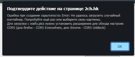 >>49090 Ошибка с анимепикчами: >Для загрузки с waifu.pics нужно установить расширение для обхода настроек CORS (для firefox - CORS Everywhere, для chrome - CORS Unblock)