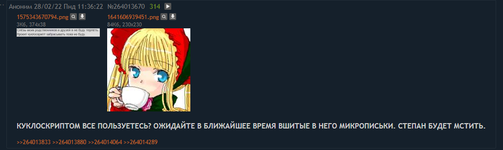 пиздец что вы обсуждаете без скрытопостинга, тред же потрут. Доска называется криптач, а не остросоциальные дискуссии на темы выходящими за окно овертона