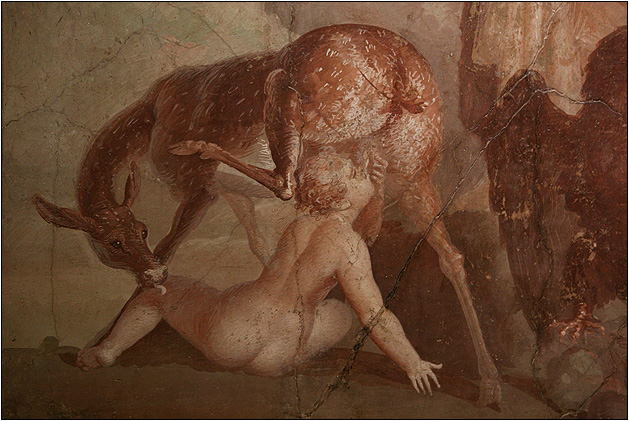 Которые, например, наталкивают на мысль, что вот эта картинка - чья-то грубая попытка скопировать "Афродиту Анадиомену" Апеллеса, величайшего древнегреческого художника. Но можно уверенно утверждать, что за такие ножищи Апеллес ответственности не несёт - эта фреска явно хуже даже найденных рядом >>4580>>4582 и т. д.