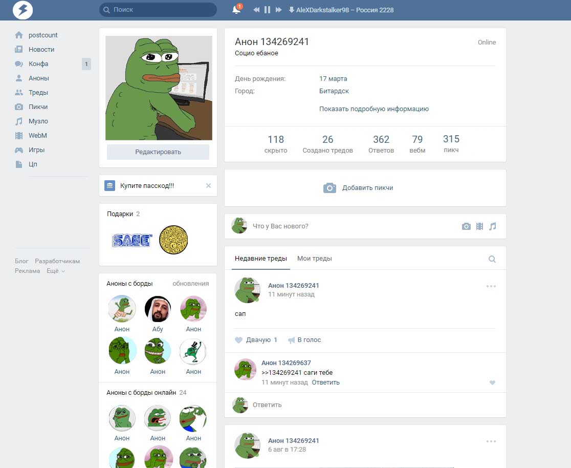 лолкерил деб возвращайся в вк, тыче глупый)) твой способ не работает, тебе надо реально оффать инет чтоб стать "СВЕРХ-СОЦИО", однако это не возможно в современном обществе, у любого человека есть инет а не работает твой способ попросто потому что в дваче ты можешь форсить все что угодно что в вк, отказавшись от вк ты стал еще больше хиккой, грубо говоря