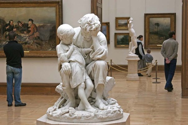 Увидел этот шедевр лет в 10-11, когда впервые побывал в Третьяковке. Я тогда был школоло и мне было скучно в музее. Но это произведение вызвало у меня непередаваемые чувства. Было очень жаль крестьянина и его сына. Скульптура повествует о проблемах народа и социальном неравенстве, как я предполагаю.