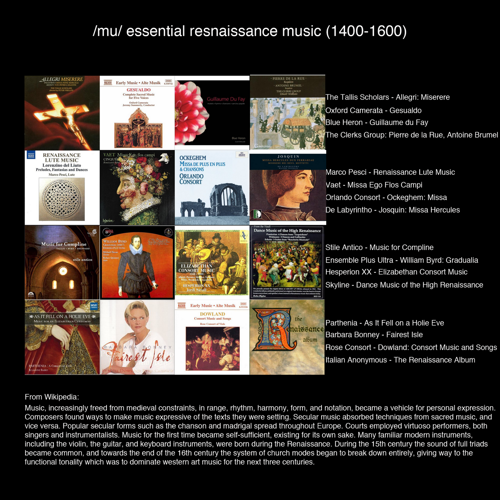 >>5476 Когда других ориентиров нет, почему бы и не попробовать? Начать слушать, а информацию о композиторах, произведениях и исполнителях искать на других ресурсах. И исполнителей там непросто так подписали: что-то же знают, наверное.