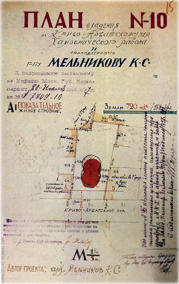 >>1173 >До сих пор никто не знает, как советскому архитектору выдали в конце 1920-х годов в центре Москвы кусок земли >На участок, кроме Константина Мельникова претендовали также и госучреждения, но, по словам самого архитектора, ситуация разрешилась в его пользу следующим образом: В 1927 году участки для застройки раздавал от Моссовета тов. Домарев. Увидя макет нашего дома, он решительно отказал всем конкурентам от госучреждений, заявив, что легче найти участки, чем построить такой Архитектуры дом. «Отдать Мельникову участок». Он не был архитектором и едва ли имел образование, он был просто рабочий.
