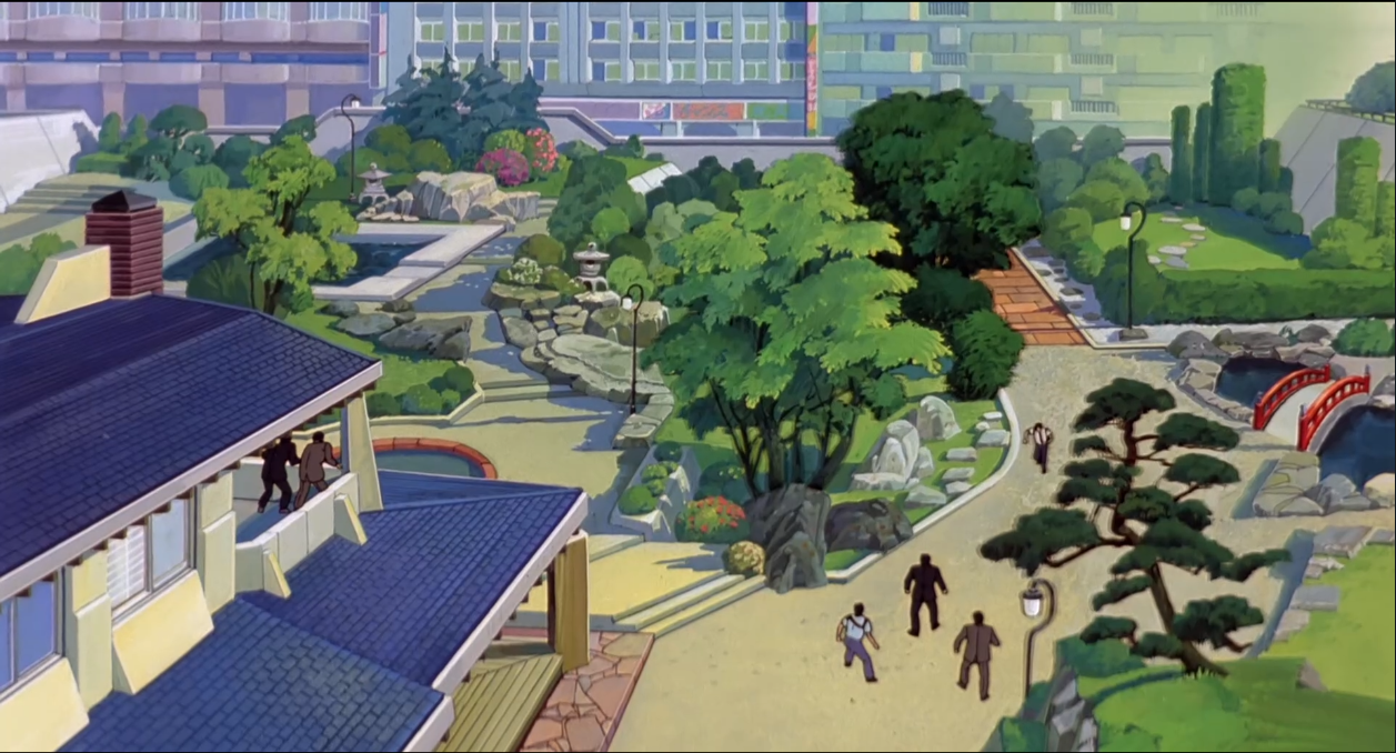мне очень понравилось вот этот кадр в аниме акира где показана вроде частная резиденция, типо как частный парк в центре мегаполиса. И это мне также напомнило жк в москве, около парка победы где тоже по сути шумной трассы построили стены и парк отдельно для жителей жк богатеев. Можно для богатых такой район сделать