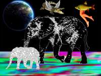 >>63928ШТУЧКИ скорее всего взяты из интернета уже готовой картинкой. Фотка по центру наложена в режиме вычитание, хотя, вполне возможно, что над ней поколдовали отдельно