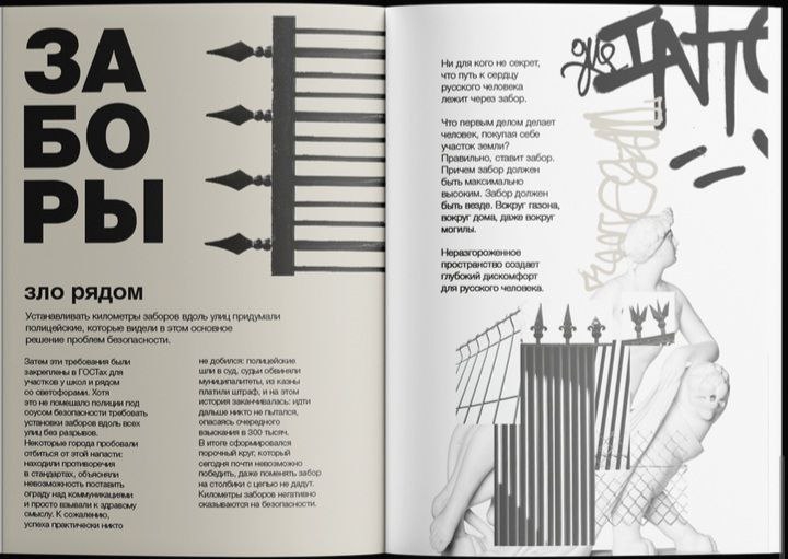 >>88920 Чел... Для начала - сорян за грубость, был пьян. Но с воздухом ты не прав. Ты его впихнуть хочешь, потому что он из каждого утюга сейчас прет и всем нравится. Но в тему хрущевки он мягко говоря не вписывается. К тому-же воздуха вполне хватает в общих композициях разворотов. В остальном же - тексты отлично читаются, типографика проработана, иллюстрации вписаны, сетки выдержаны, акценты расставлены. Поэтому с точки зрения грамотной визуальной подачи тут всё хорошо. И все остальные пожелания являются именно что вкусовщиной.