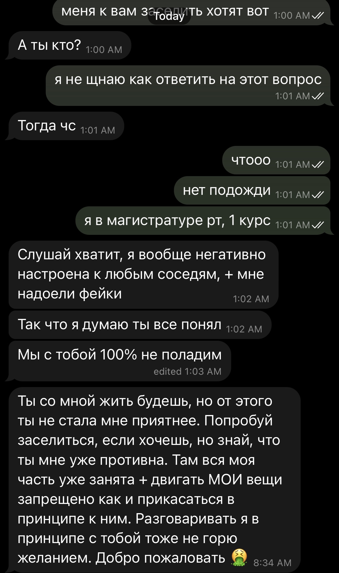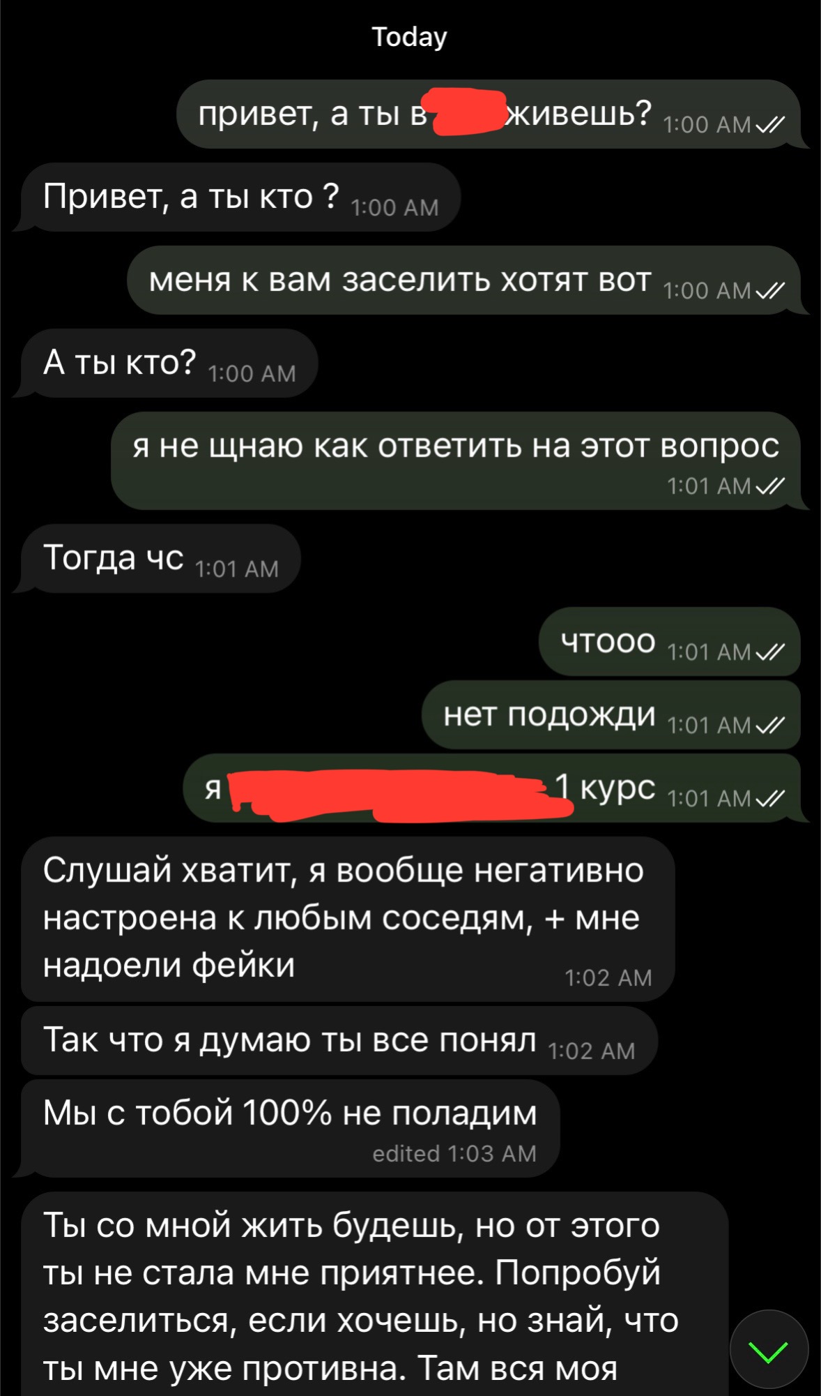 Двачик привет, я поступила в университет, заселяюсь в общагу, а мне такое пишет соседка. Я очень сте