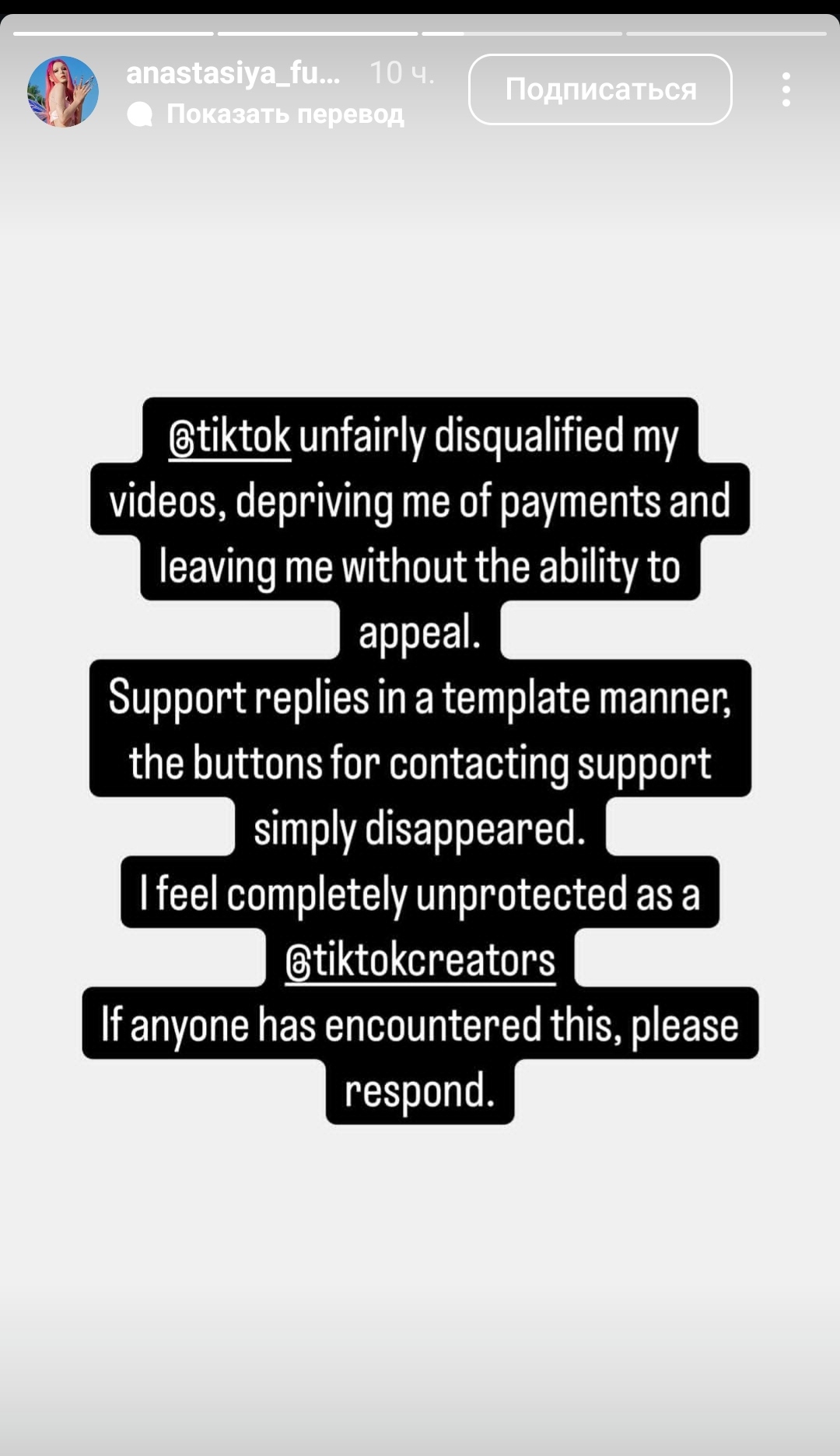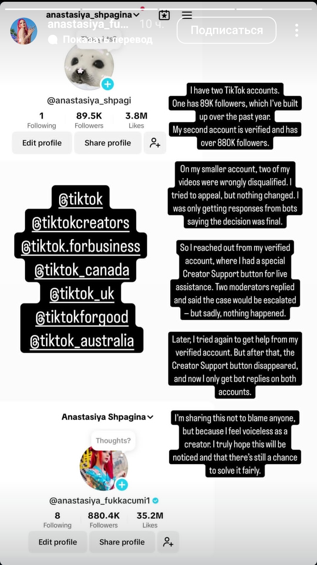 >>6129541 Меня во всей этой истории дополнительно трясет от злости с ее предъяв по поводу аборта и недостаточных пожалеек на этот счет. Похуй даже что она предъявы эти кидает буквально человеку с онкологией, но она кидает их человеку, который как раз таки ее поддержал, нашел деньги занять на все это дело в конце концов. Бесплатную медицину вроде никто не отменял, но бубочке надо было только к частному врачу, а у мамули на такое бы она не выпросила Не делай бубе добра, не получишь зла