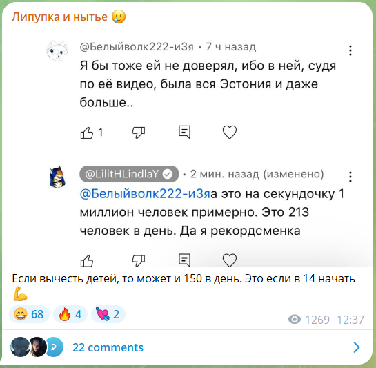 >>6127730 Эм, сис, так СВО тогда началось и Клоп даже немного страдала по этому поводу в тг. Говжена тогда даже затравили в инете из-за его молчания на эту тему, Клоп решила состорожничать. Это на багине даже обсуждалось.