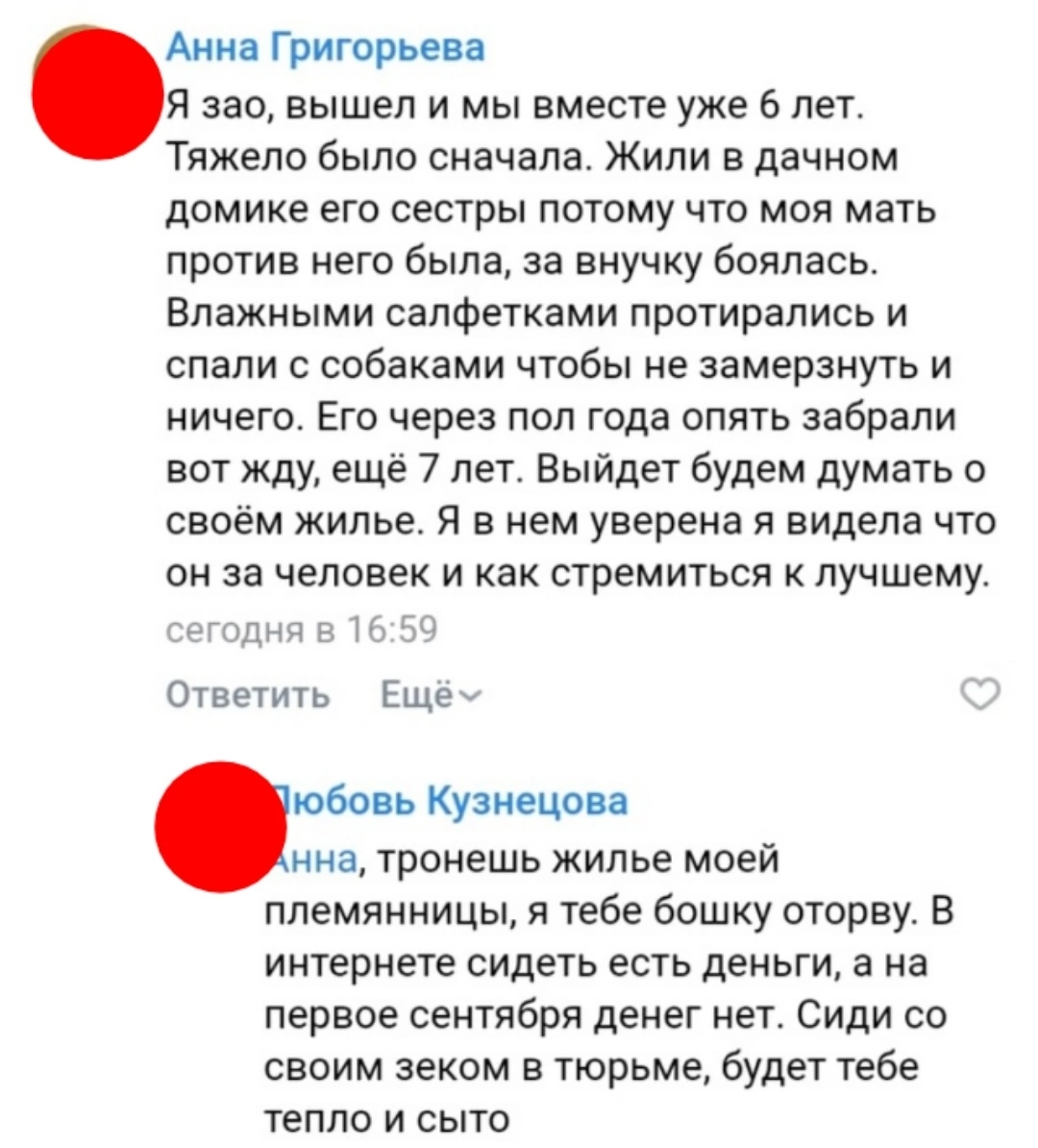 >Не "травила раковую больную", а "сорвалась на больную соседку, с которой снимала комнату в коммуналке Сорвалась на больную соседку (с которой кстати судя по переписке они сошлись на расходе без посылов нахуй друг друга) путем постинга и натравливания своей аудитории и ебыря на соц сети оной, не травля ни коем разом Тупорылая все второй день не может врубиться в разницу между поссориться лично и высраться с указанием имен на свою аудиторию, скрыв неудобненькие факты