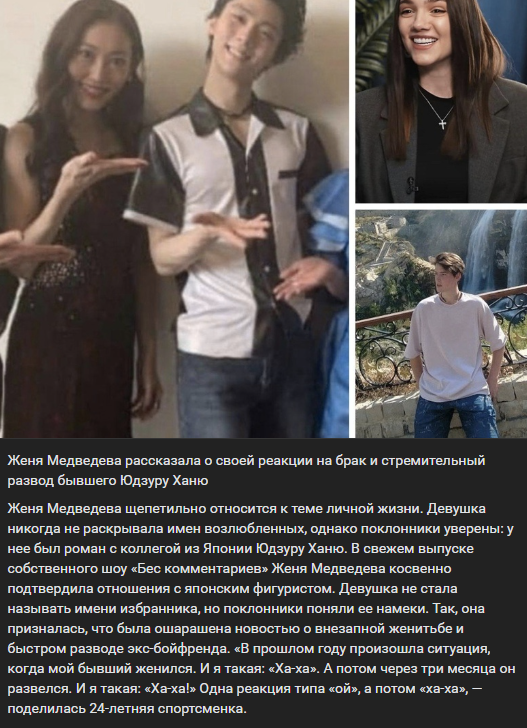 >>6129962 >предположительно Юдзуру Ханю дропнул, который тоже феминный Нихуя себе новости. В первый раз слышу, хотя этого Ханю периодически гуглю, как так вообще. Женя стейсуха конечно, два года встречались, хоть он ее и бросил в сложный момент по ее же словам. Хотя свою жену он тоже как то резко бросил после начала сталкерства.