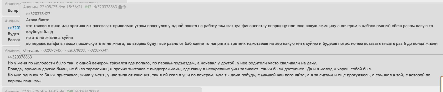 >>6129930 >У меня дядя вахтовик. Блядовал он разве что в мелких городах, мб Не, я имею в виду неженатые вахтовики блядуют только так. А женатые в основном да, бухают как падлы. У бывшетян батя был такой, в принципе норм как батя и человек. Но он приезжал с вахты, укладывался с водярой на диван и так пару дней кирял до невменоза. Потом приходила медсестра, откапывала его (и вообще всех вахтовиков в их городке) и дальше он жил как полноценный человек - по дому дохуя всего делал, что-то строил, ездил за покупками, с дочкой время проводил. >ждать военного или моряка Так эти наоборот - вакантные женихи. Ну по крайней моряки, у них большие зп и жены обычно такие на луксмаксе модные тяночки. А военные женятся до распределения обычно, тупо лайхфак для тех, кому надо колечко. Как и попы кстати.