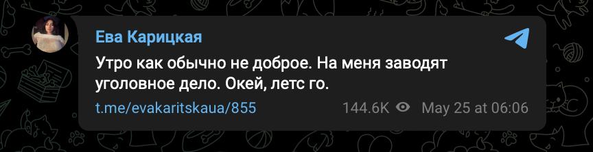 На бывшую жену Паши Техника хотят завести уголовное дело Свое преследование она связала с неназванными людьми, которые «пытаются себя обелить» и организуют «нападение» после того, как Карицкая «докопалась до правды».