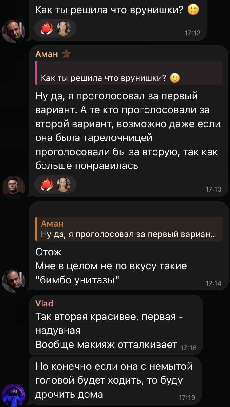 Да-да. Это на самом деле стадия отрицания. Тян уже понимает, что ее чушкан - чмоха. Но она пытается активно делать вид, что это не так. Да, он всратый, нищий и ему похуй. Но она придумывает ему достоинства и активно об этом пиздит, саму себя убеждает, что он на самом деле крутой чел. Очень жду, когда она смирится и перестанет врать себе.