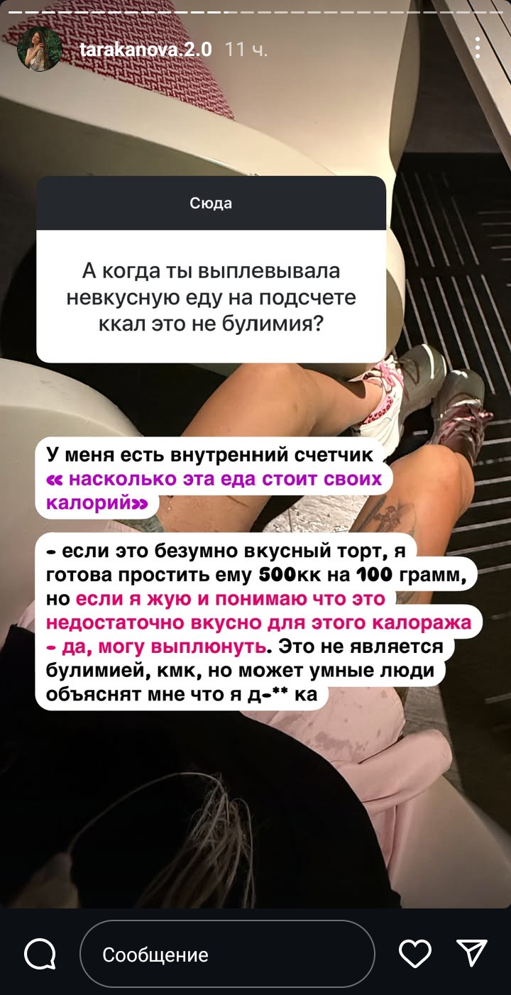 Заметила, что рппшницы любят снимать видосы о том, как они приняли и полюбили своё тело, наладили здоровые отношения с едой. Только на деле эта рппшиза усиливается всё больше. Дася тоже такие видосы пилила, а потом легла под нож для откачки жиров и урезания желудка.