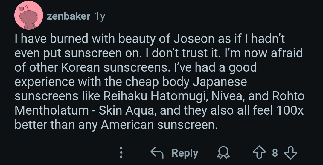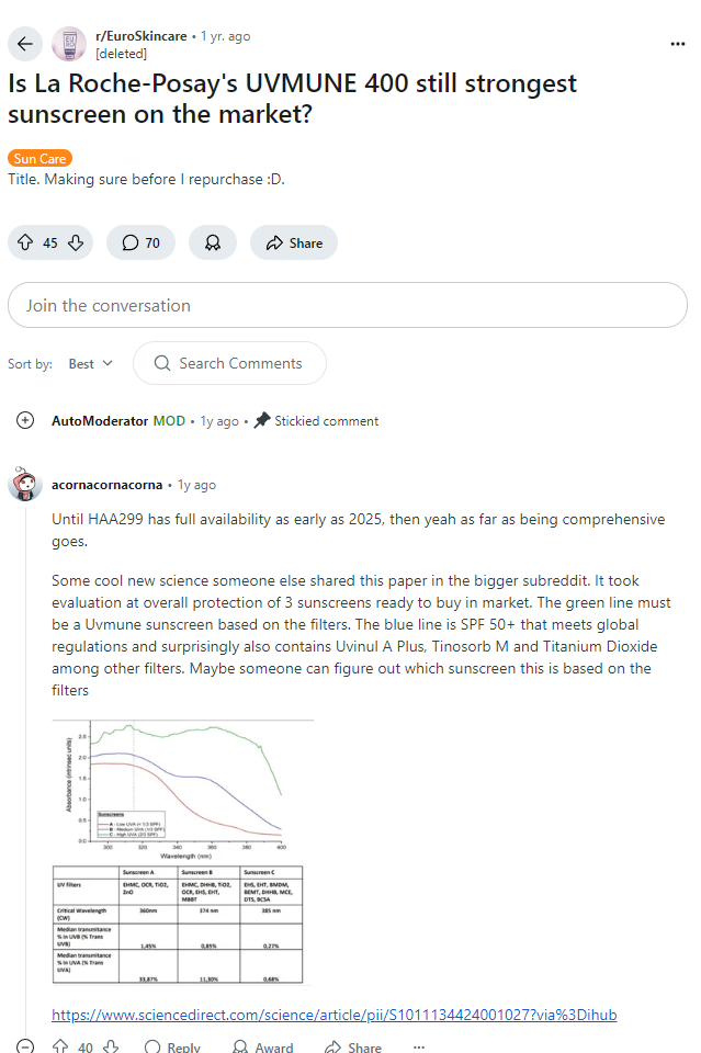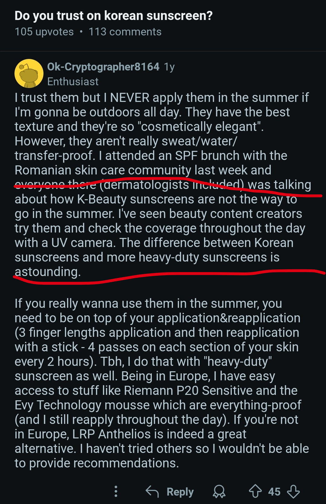 >>6124304 постакне лучше всего фигачить кислотами, а на кислотном уходе очень очень надо спф! у матцесты хорошие отзывы как раз потому, что она нихера не похожа на спф и стоит дёшево, мне кажется...вот если бы там в отзыве приложили спину сгоревшего мужика, который намазался матцестой только на плечах, где достал, и там не сгорел - вот это я понимаю отзыв. а так все только радуются, что крем не жирнит очень интересно было бы на крем посмотреть под увф лампой, там спф должен выглядеть чёрным как нефть