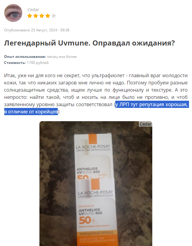 >>6125295 Холика алоэ. На озоне продавец холика ритейл, в наборе с алое гелем сейчас косарь как раз. И объем у него 70 мл. Делаю фул мейк сверху, меня устраивает. Но санскрин это всегда более сияющая кожа, особенно на солнце. В летуале еще можешь отслеживать акции. Когда они баллы начисляют, можно по промокоду + баллам оч выгодно закупаться. >И как проверить, что он действительно защищает и от UVB и от UVA Никак, только производителю довериться. Маркировка PA на упаковке означает защиту от UVA, а плюсики степень защиты.