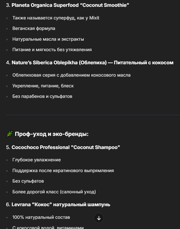 А, лол, там вообще не меня спросили...>>6134407 >>6134110 Ну если ты себе наладила уход, то и супер. Я слушала подкаст хозяйки этого салона, человечек много учился и не от балды составили эти списки. Ты может жирный бальзам/кондиционер представляешь как кокосовое масло, лол. Но там скорее характеристика по составам, а не про слово "питательный"/"увлажняющий" на упаковке. Может твой "увлажняющий" как раз подходит под категорию "жирный" на сайте, лол