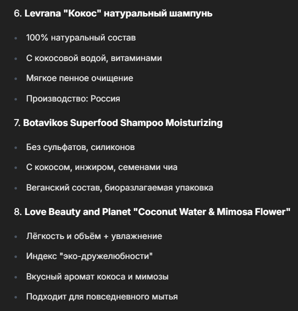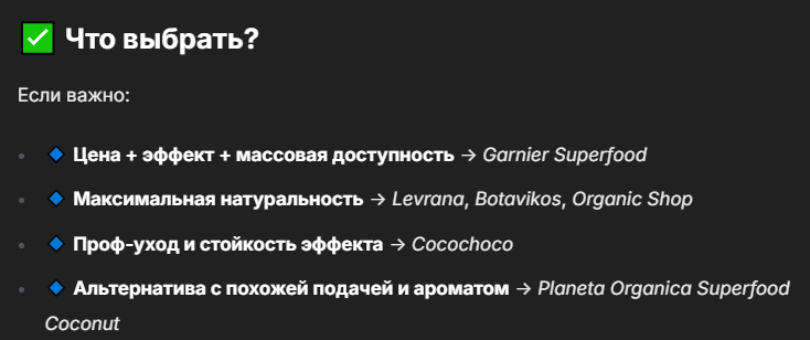 На пробу я много что брала из того списка, поэтому и советую! Я ходила в питерские кудрявые салоны, мне все понравилось, кроме ебейше дорогого ухода. Так что я сама с собой играю в игру "выбери лучшее для своих кудрей, но в сегменте масс-маркета" Пока это: Synergetic шампунь "Максимальное питание и восстановление ECO laboratorie бальзам для волос "Восстановление и питание" Белита-М несмываемый крем для глубокого увлажнения "Bao beauty" Всё есть на озоне